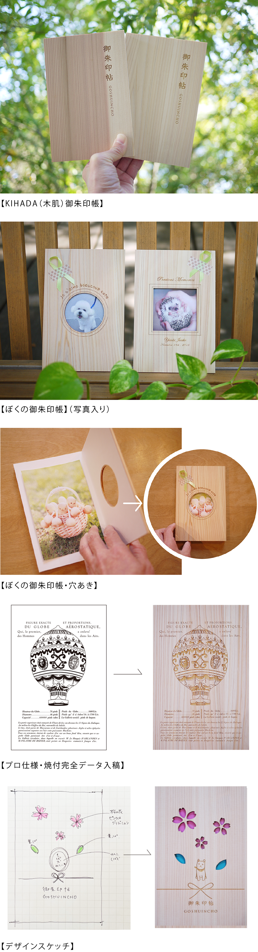 【ぼくの御朱印帳】では、自分の撮った大好きなペットや、風景や花など自慢の一枚が表紙に仕上がります。